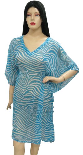 Sheer chiffon material allover fabulous printed kaftan with tube at waist line for perfect fitting!! This attractive cover up having Sober hand worked Neck Line ...Looking most gorgeous & Sexy !! Size: Fits up to Chest Size: 44", Length: 41". Fabric: Chiffon, Color: Blue !! TM.../ Gorgeous Printed Sheer Kaftan Partywear Tunic Top Caftan XMas Christmas Gift / Chiffon Gown