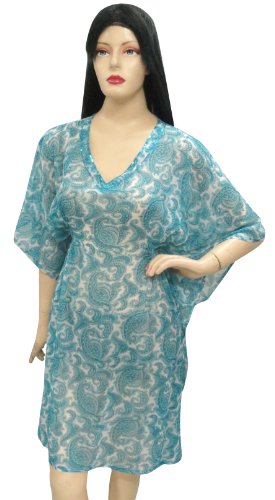 Sheer chiffon material allover fabulous printed kaftan with tube at waist line for perfect fitting!! This attractive cover up having Sober hand worked Neck Line ...Looking most gorgeous & Sexy !! Size: Fits up to Chest Size: 44", Length: 41". Fabric: Chiffon, Color: Blue!! TM.../ Allover Printed Green Color Sheer Printed Kaftan Cover up Tunic Xmas Christmas Gift Top / Chiffon Gown